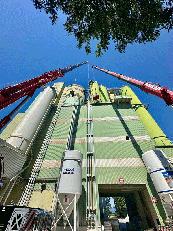 Durch unsere jahrzehntelange Expertise im Bereich Rückbau/Demontagen von Industrieanlagen, wurden wir beauftragt, in einem Zementwerk in der Nähe von Regensburg diverse Hebearbeiten bei einem Rückbau durchzuführen. Eingesetzt wurde unter anderem ein LTM 1070-4.2 und ein LTM 1095-5.1.