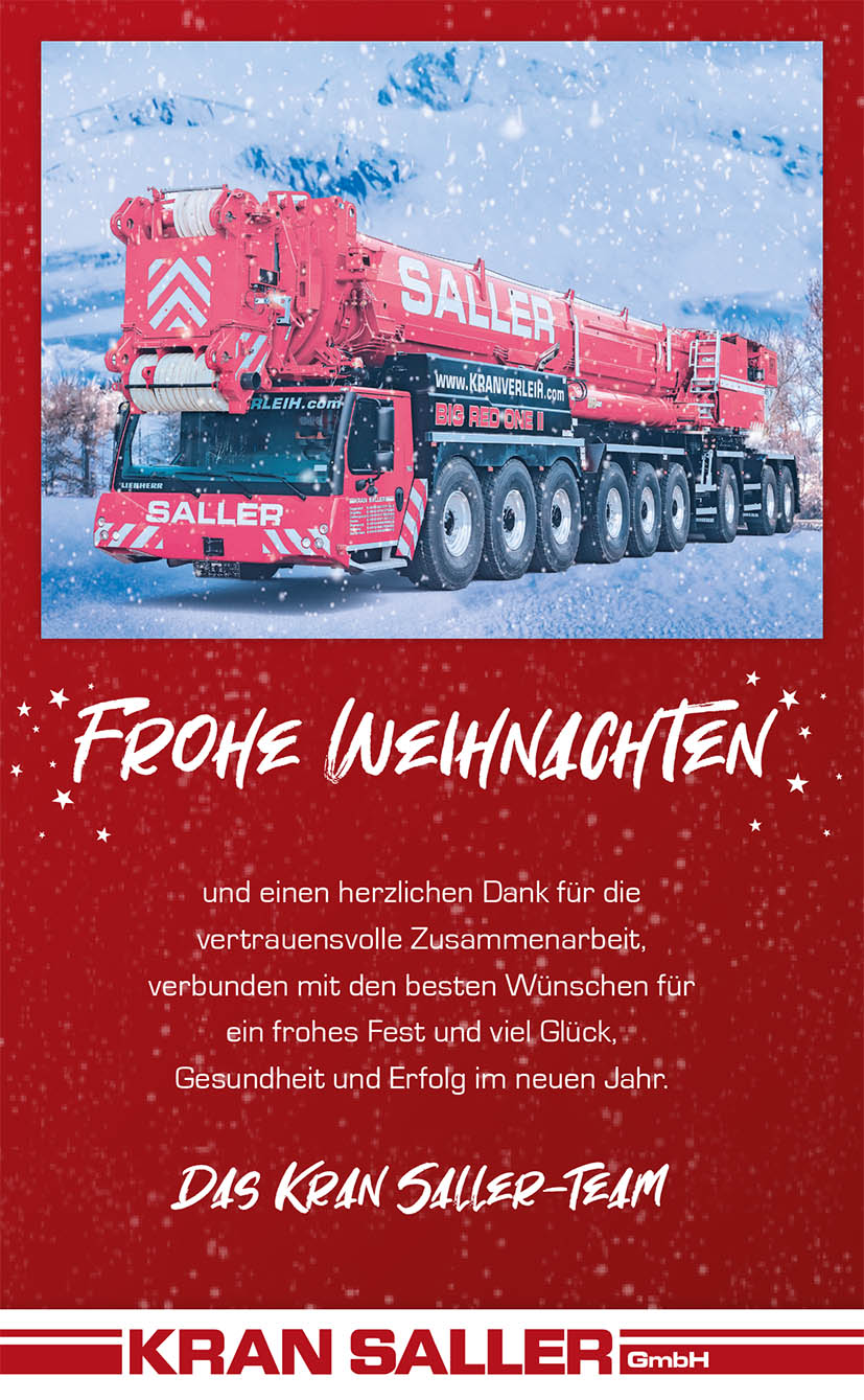 Kran Saller wünscht den Besuchern der Internetseite frohe, besinnliche Feiertage und ein gutes und erfolgreiches Jahr 2022.