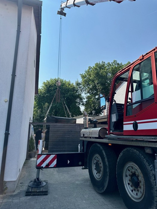 Der richtige Außendienst, kombiniert mit der richtigen Maschine und natürlich dem Wichtigsten, dem passenden Bediener. Die Bilder zeigen einen AC 40-1 City Spezialkran, der durch seine extreme Kompaktheit diesen Hubvorgang realisieren konnte. Wir finden für Sie die passende Lösung, wir freuen uns auf ihre Anfrage!